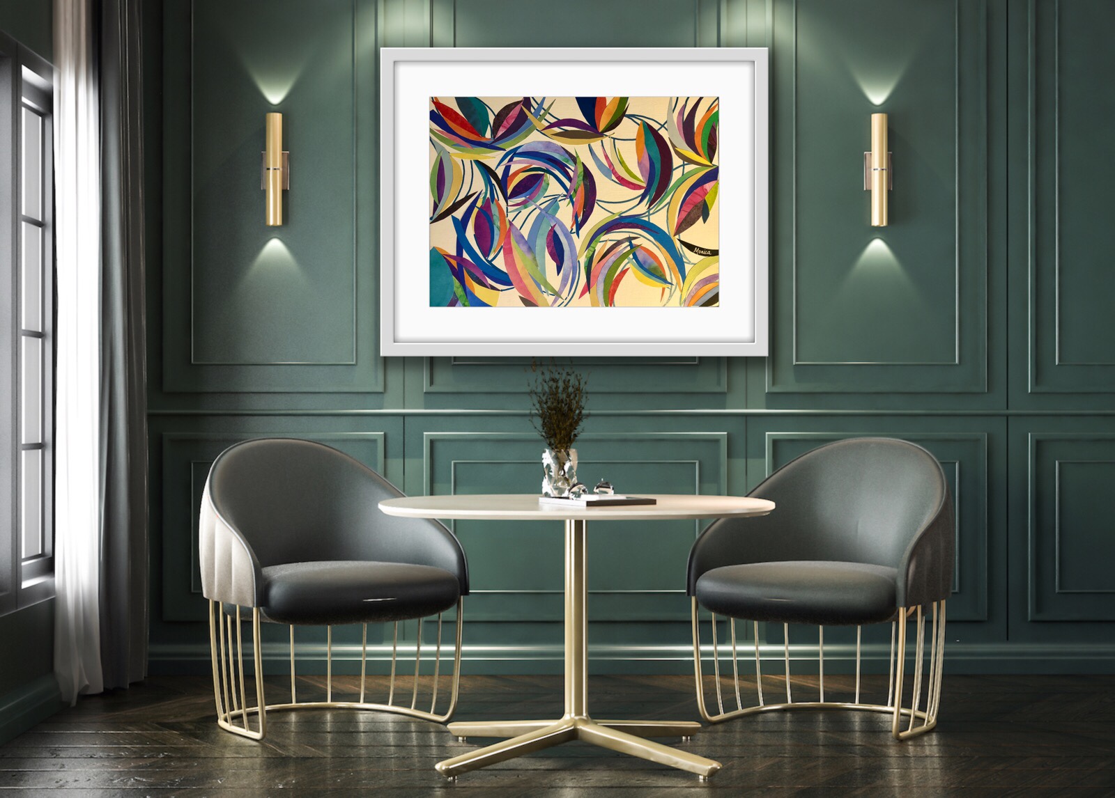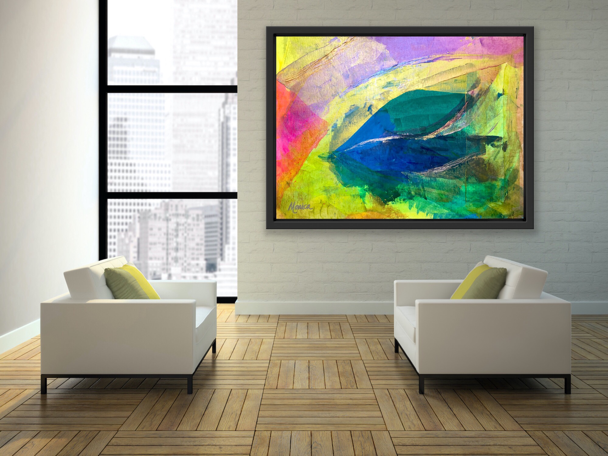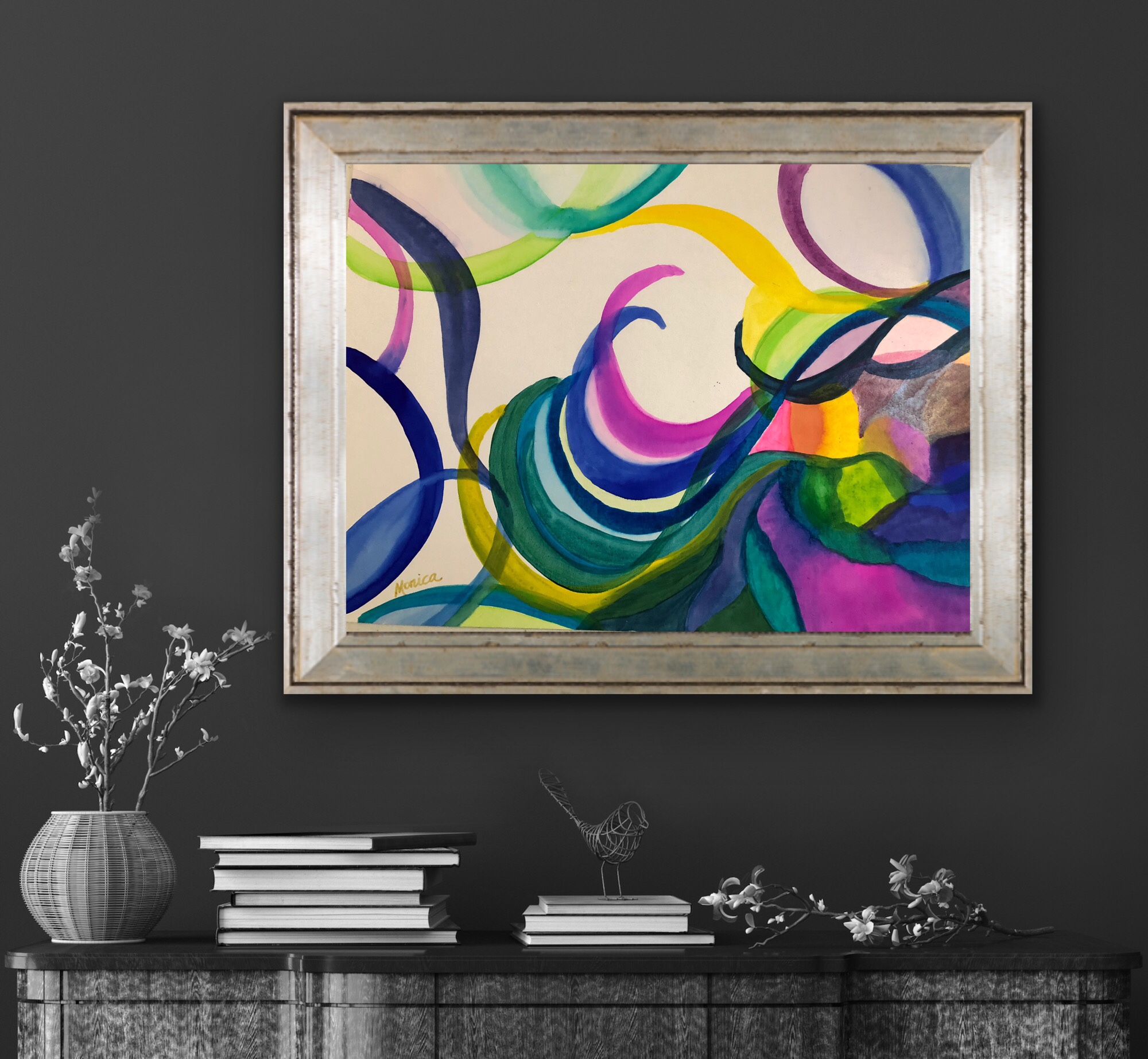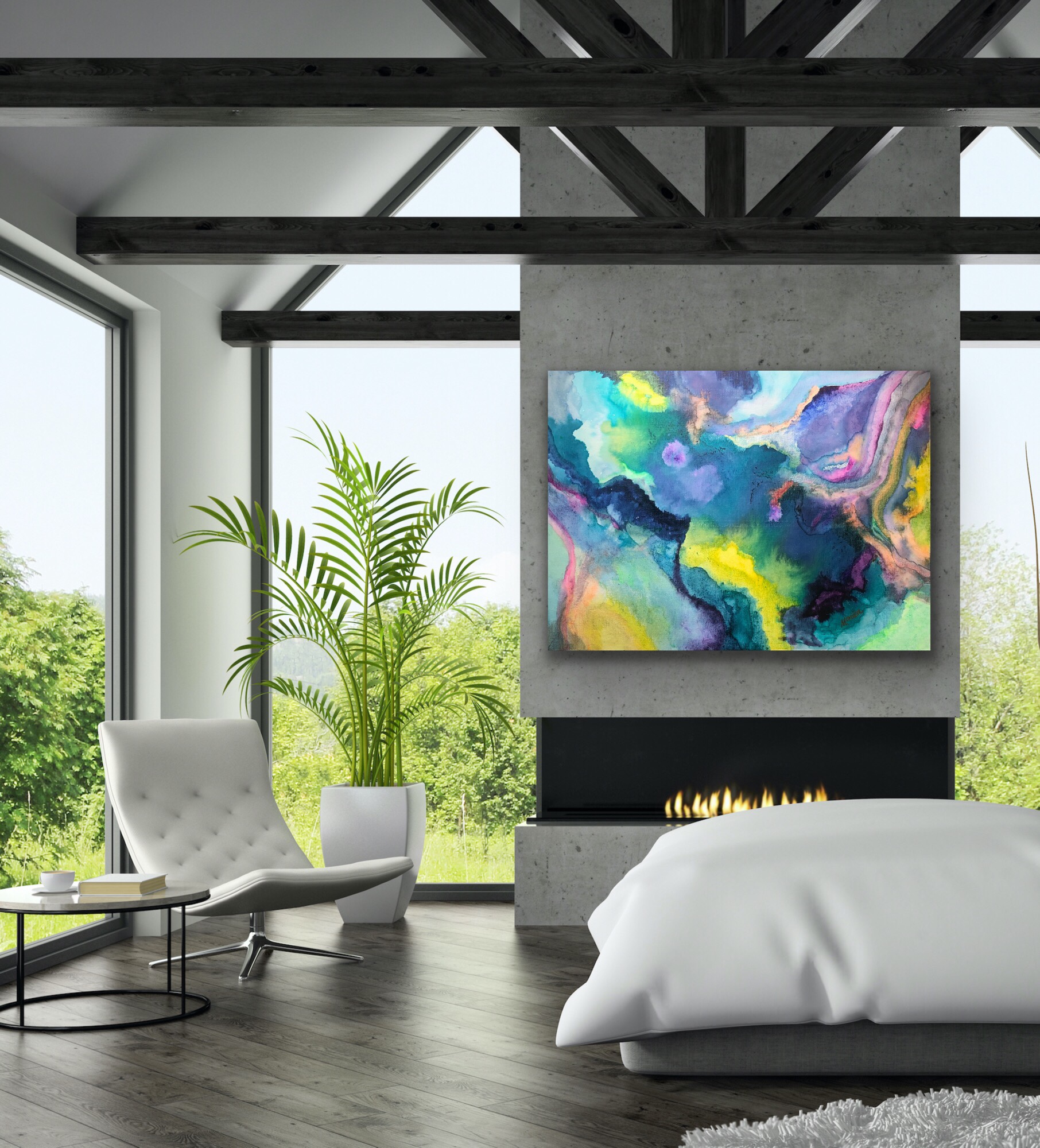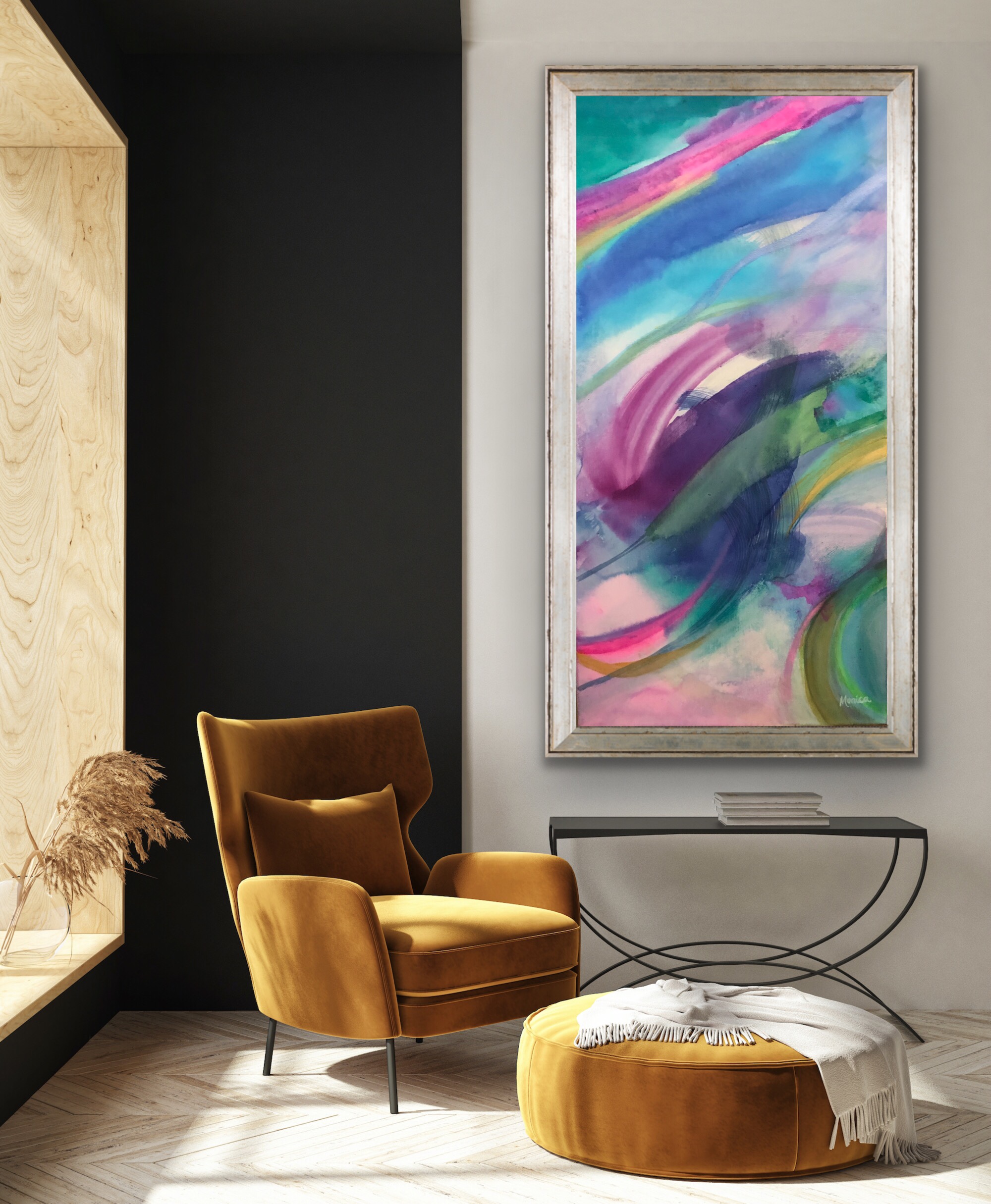 Take a look at the gallery of images with my art work in an interior designed home setting.
